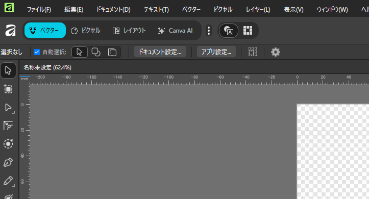 左上にベクター・ピクセル・レイアウト・canva AIの4択がありまして、ベクター=イラレ、ピクセル=フォトショ、レイアウト=インデザイン(?)、AIツールが収まっています。